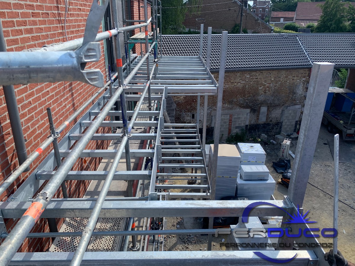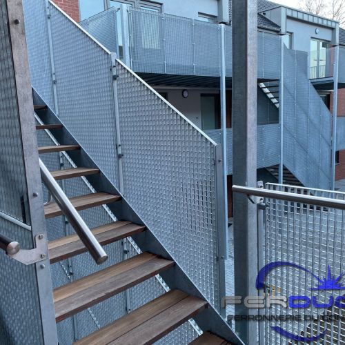 Dans le cadre de la transformation d'une ancienne ferme en un complexe résidentiel comprenant six maisons mitoyennes et dix appartements, nous avons réalisé plus de 150m² de structures métalliques. Nos travaux incluent la construction de coursives et de plusieurs escaliers, l'installation de bardage en caillebotis avec des gardes-corps assortis, ainsi que la création de balcons encastrés. De plus, nous avons effectué diverses réalisations en inox, acier et verre, apportant une touche audacieuse et distinctive à l'ensemble du projet.